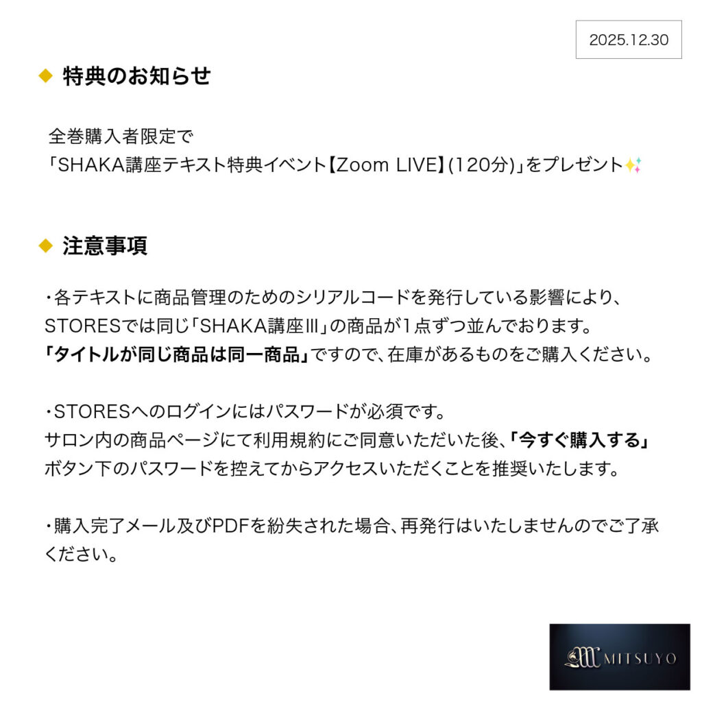 SHAKA講座 -Ⅲ-テキスト販売開始のお知らせ